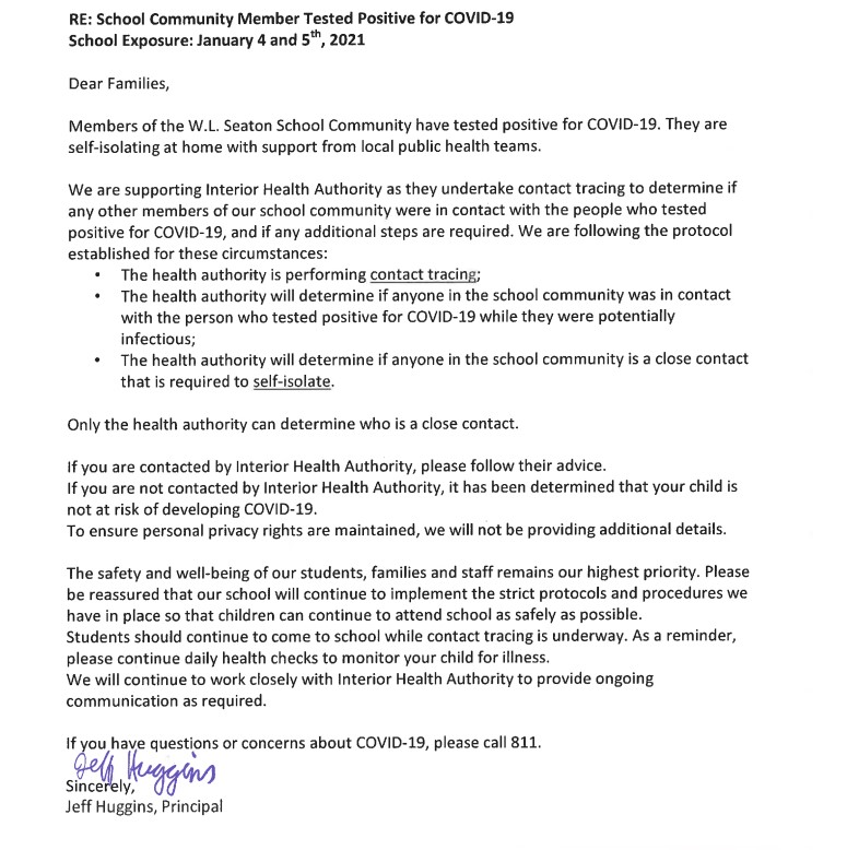 That’s in addition to the two exposures at W.L. Seaton Secondary, as detailed below, also on Jan. 4 and 5.