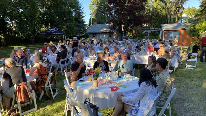 The weather co-operated as over 100 guests enjoyed an outdoor prosecco reception with appetizers, art viewing and music from Jayme McKillop. That was followed by charcuterie, wine, dessert and coffee. Guests came in theme including colourful sun hats and fedora’s.
