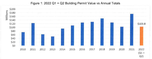 A report to Vernon city council Monday, Sept. 6, shows that in the first two quarters of the year, the city’s building permit values were a combined $103.8-million. That total includes more than $45-million in construction values from the second quarter (Q2).
