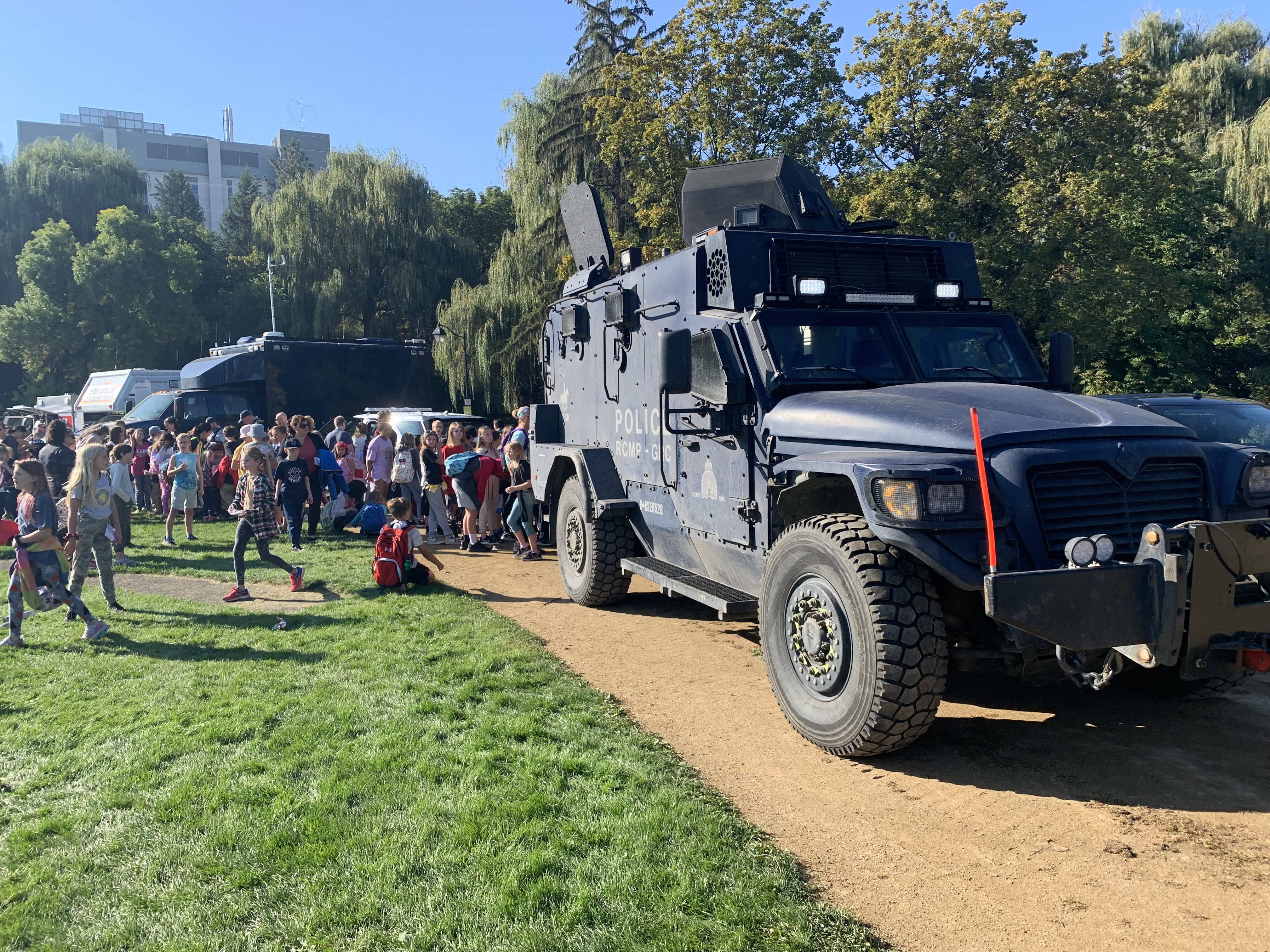 Several hundred students, teachers and members of the public gathered in Vernon’s Polson Park to learn more about what first responders do.