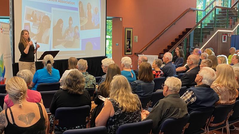 Funders and charity representatives gathered at the Vernon and District Performing Arts Centre for the funding announcement.
