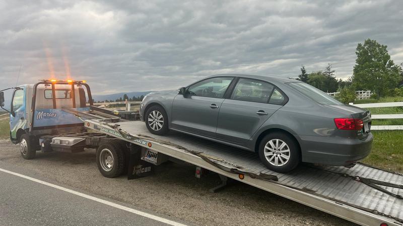 Kelowna RCMP say a municipal traffic service member in a fully marked police car was parked on the shoulder of Stewart Rd. on the morning of June 14.