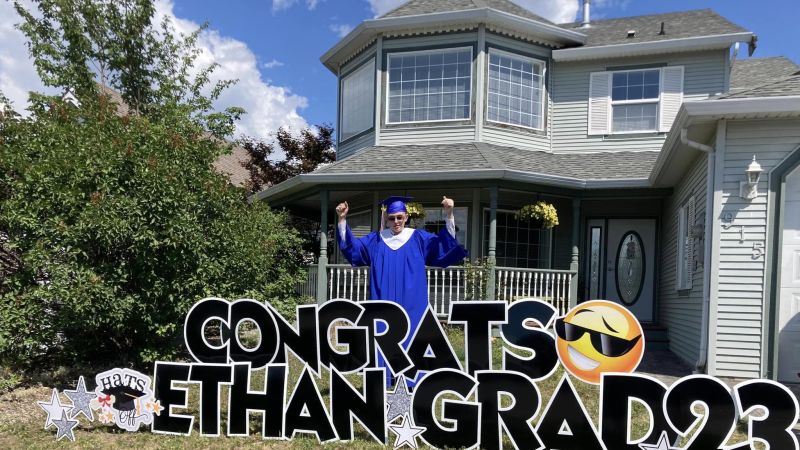 Ethan Hammerton celebrating his grad in front of his Vernon home (submitted image)
