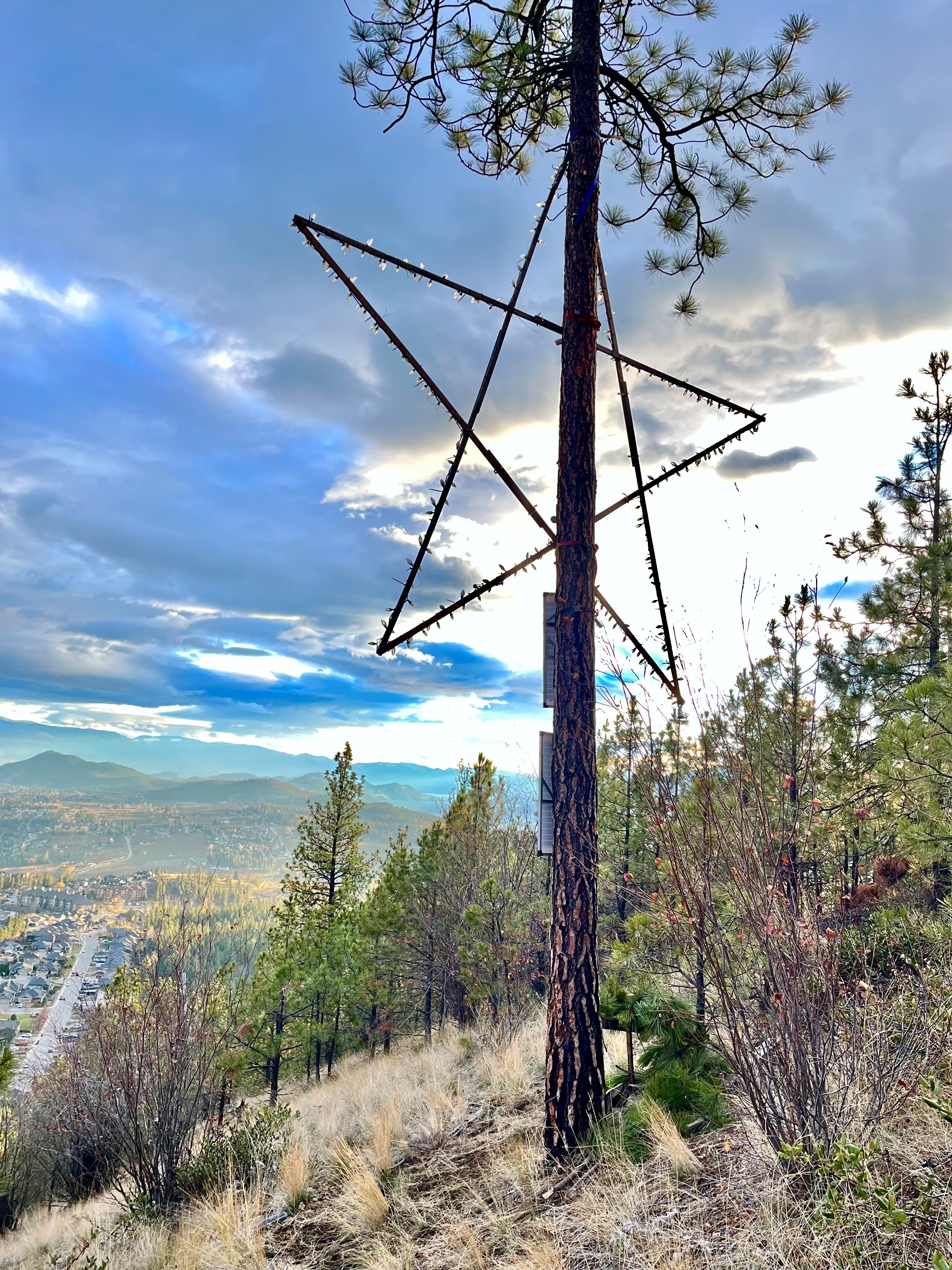 The Lake Country Star was installed on Spion Kop Mountain by Mitchell, Jake and one of their friends in December of 2020 with the goal of lifting the spirits of the area’s residents during the COVID-19 pandemic.