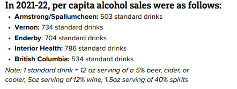 The rate of heavy drinking in the Okanagan is 23 per cent, which is five percentage points higher than the 18 per cent reported across British Columbia.