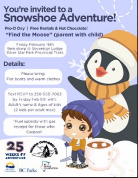 The club has been working with BC Parks to offer a free snowshoe event on Friday, Feb. 16 at 9 a.m. at the Sovereign Lodge.