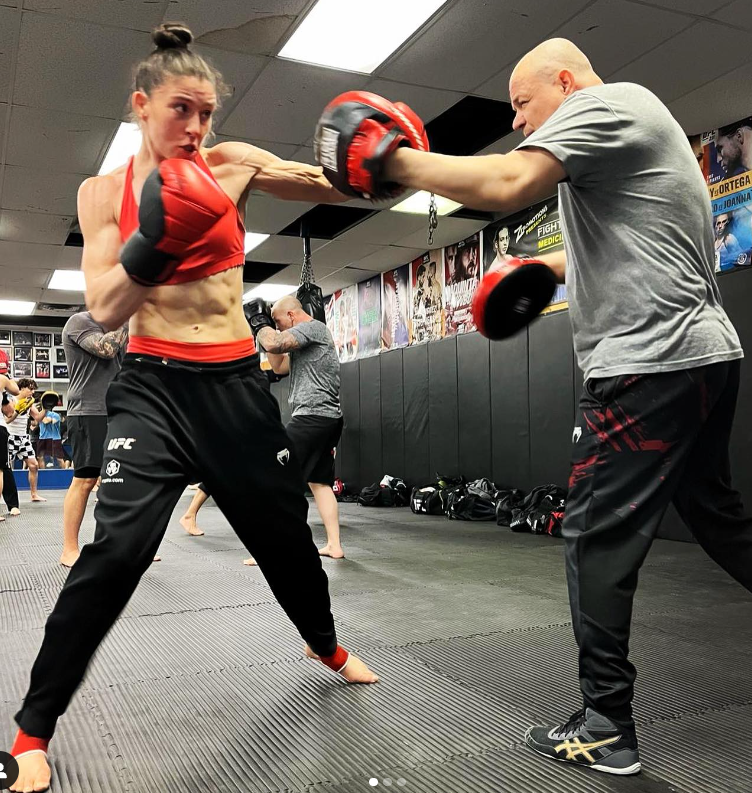 Sierra Lee Dinwoodie training with “Kru” Alin Halmagean (Image: “House of Champions”)“I’m working with an incredible team here at House of Champions. Training under coach Kru Alin has been pivotal in my career. I’m lucky to have training partners like Diana Belbita, Kyle Nelson, and Mike Mallott who are all currently in the UFC,” Dinwoodie said.