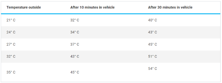 The RDCO says temperatures inside vehicles can climb significantly, even when parked in the shade, and within 10 minutes the mercury can reach to levels that can seriously harm or kill a pet.