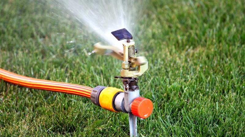 - Use a sprinkler or irrigation system to water a lawn, garden, trees, or shrubs,