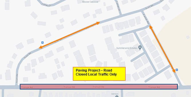 The section of Tronson Road that will be closed for road work Thursday and Friday (image courtesy of the City of Vernon)