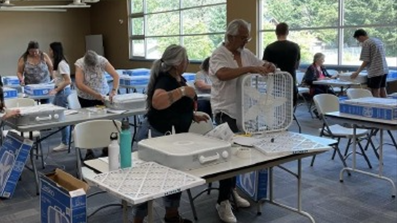 People assembling air filtration systems (photo courtesy of the City of Vernon / Facebook)