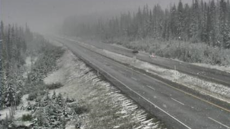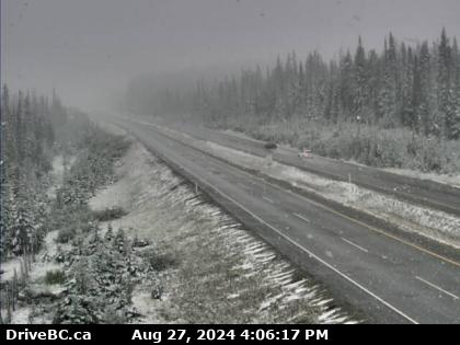 Flurries falling on the Okanagan Connector near the Pennask Summit Tuesday, August 27 (photo courtesy of DriveBC)