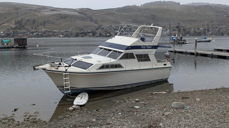 The seemingly abandoned boat at Paddlewheel Park (photo by Liam Verster / Vernon Matters)