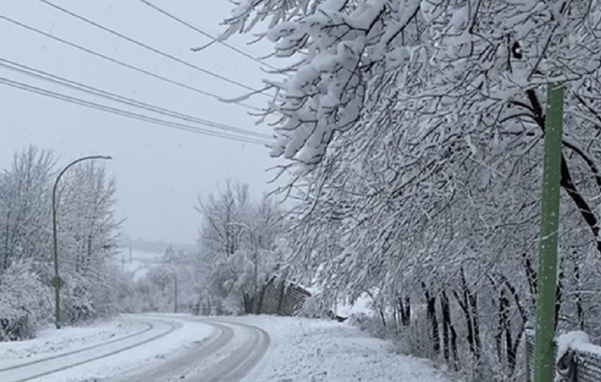 Snowfall had eased by around 8:30 a.m. but not before various incidents on Highway 97 and in Glenmore.