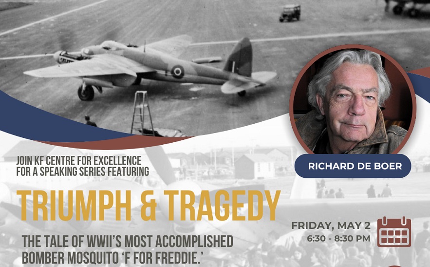 On Friday, May 2, the KF Centre for Excellence will host Triumph & Tragedy: The Tale of WWII’s Most Accomplished Bomber, Mosquito ‘F for Freddie’, a special edition of the centre’s Speaking Series. It goes from 6:30 p.m. to 8:30 p.m.