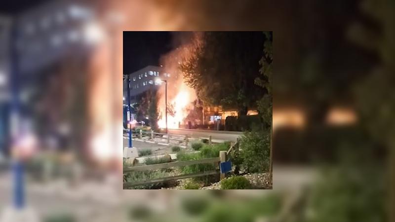 The fire broke out Tuesday night in the 2100 block of Pandosy Street, right beside the historic Anne Stirling heritage home. A video posted to social media shows flames ripping over 20 feet into the night sky, fully engulfing a hedge and coming dangerously close to the home.