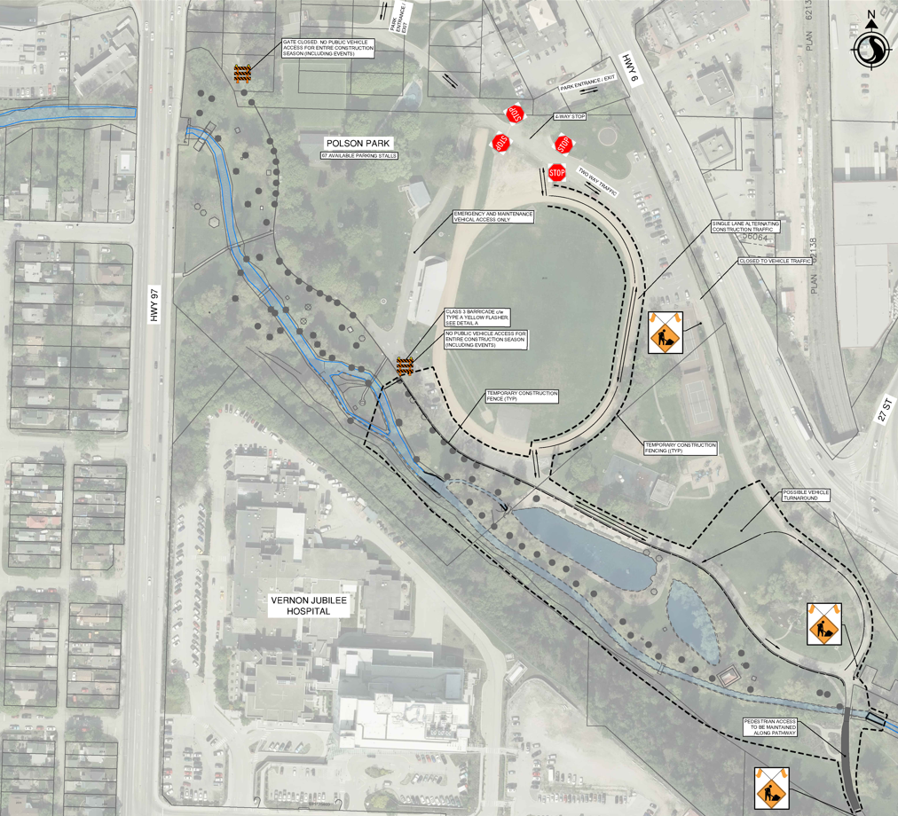 Contractors will be undertaking Phase 2 of the Polson Park Vernon Creek Naturalization project from June through November.
