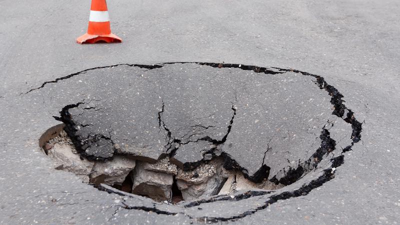 A section of a road north of Grindrod was closed in both directions Wednesday due to a sinkhole opening up.