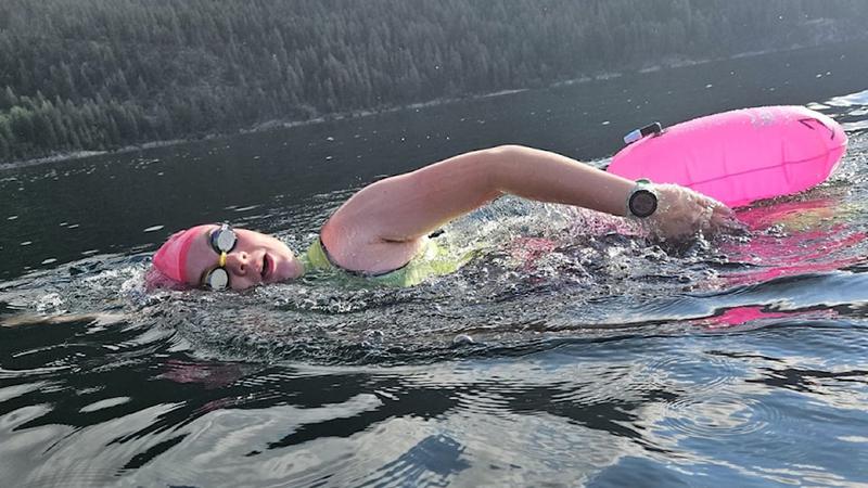 The 19-year-old hopes to set a Guinness World Record for the fastest female swim of the 106-kilometre lake.