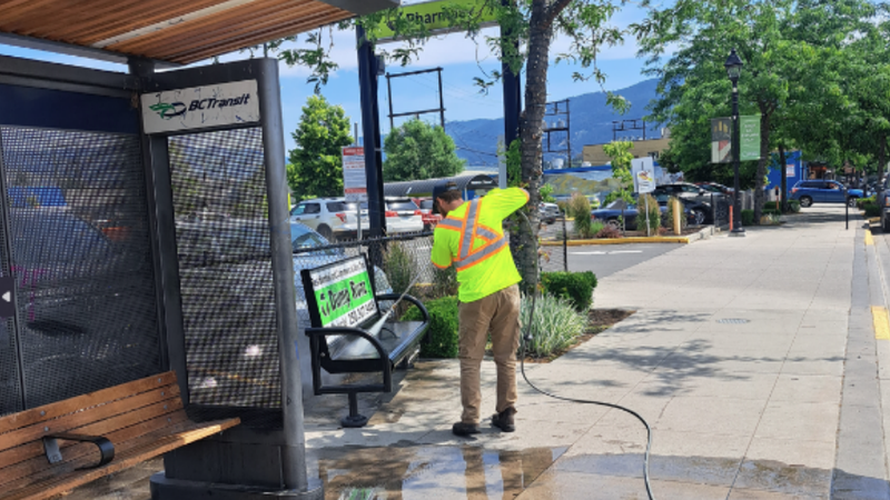 The City of Vernon launched it’s Clean Team in early June to beautify the downtown core by removing graffiti and stickers; picking up litter; cleaning curbs, sidewalks, bus stops, and street furniture; doing some light landscaping work; and painting railings.