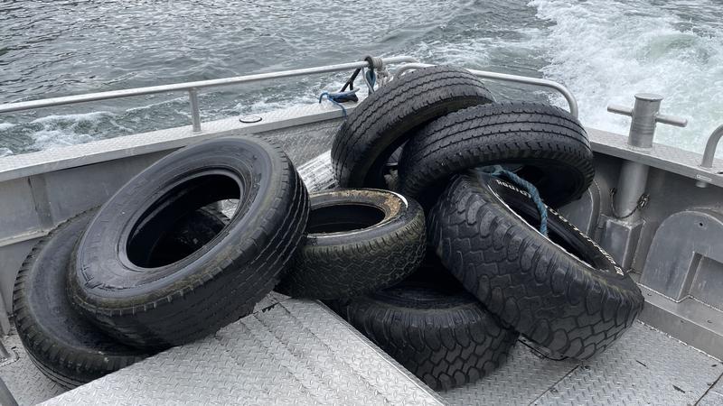 The local search and rescue society is warning that tires left in the water can pose a risk to the public.