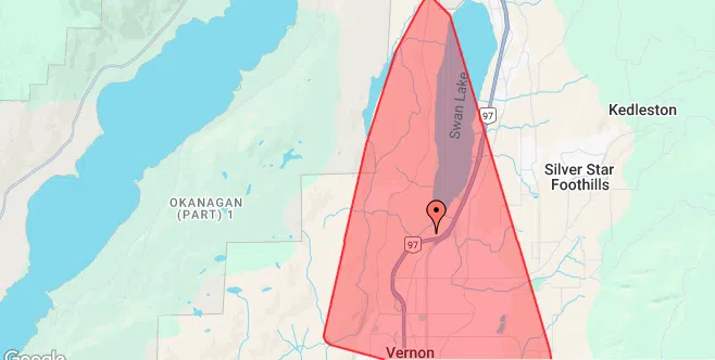 The outage affects much of East Hill, downtown Vernon, North Vernon and the Foothills.