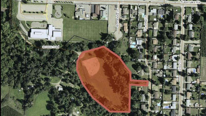 The District of Coldstream said the construction will require the ball field area and the path leading to De Jong Drive being closed to all users between July 8 and August 29.