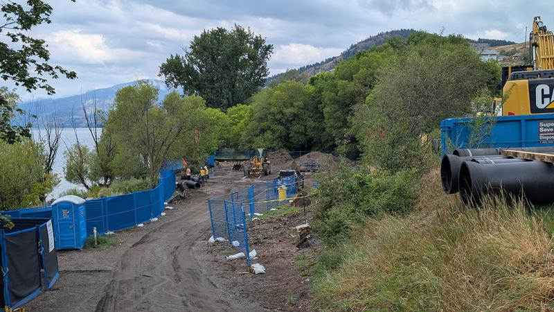 The Regional District of North Okanagan says the Canoe Bay Pump Station, located at the north end of Kin Beach near Tronson Road, is on schedule. The pipe installation, instream works, and cultural heritage monitoring was underway as of Tuesday, July 22.