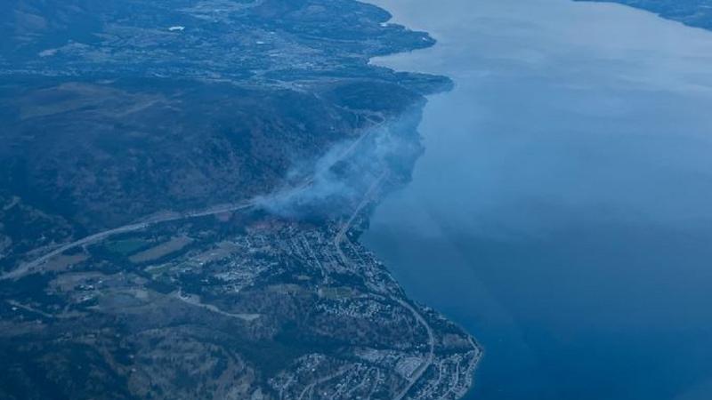 Thirty-five BC Wildfire Service firefighters and members of the Peachland Fire Department are on scene, targeting hotspots. Additional skimmer aircraft have joined the aerial attack, collecting water from Okanagan Lake.