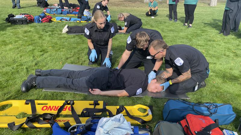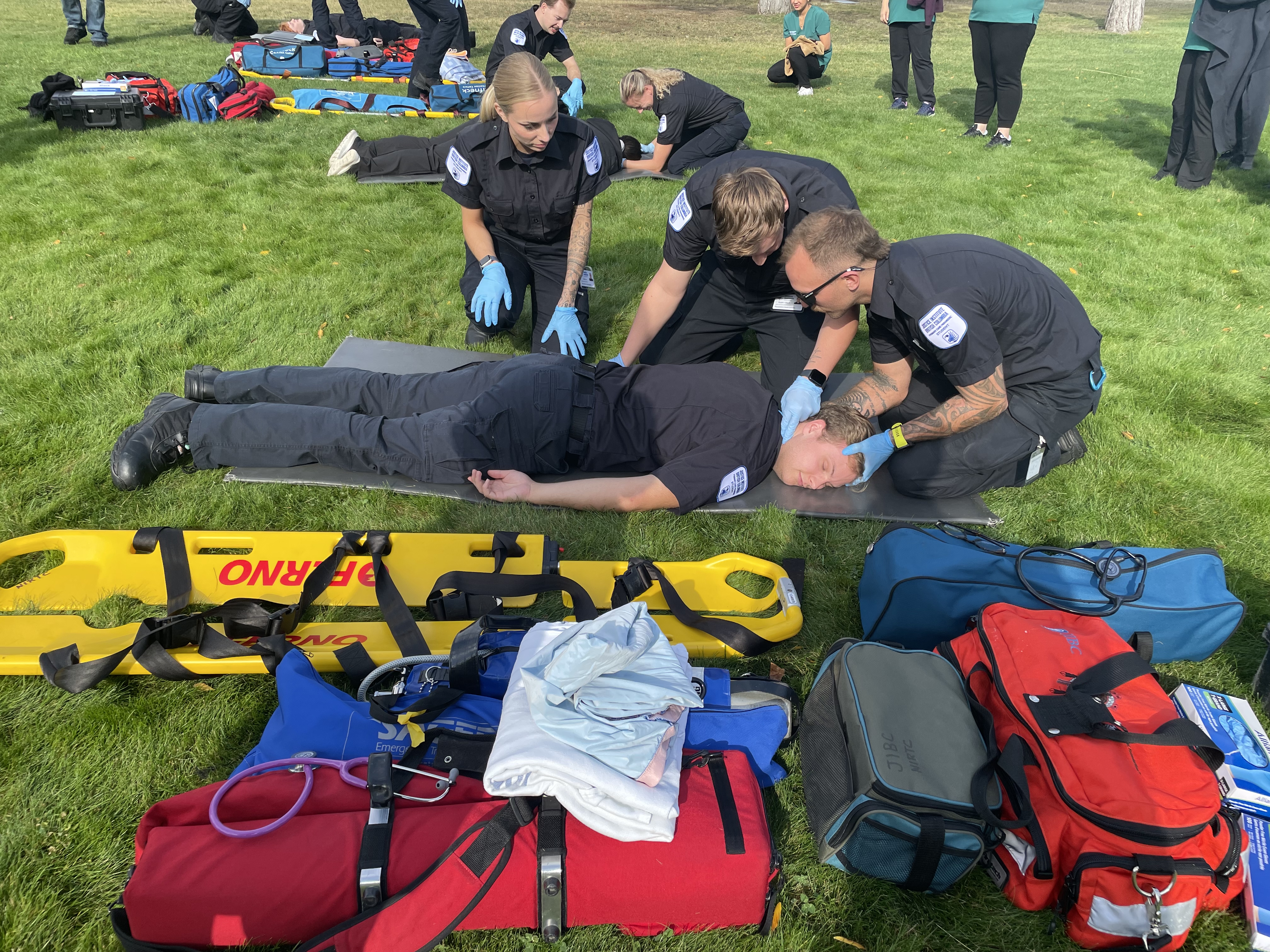 Students in the paramedic and emergency medical responder programs at Okanagan College Vernon putting on a simulation Wednesday (Photo courtesy: OC Vernon)