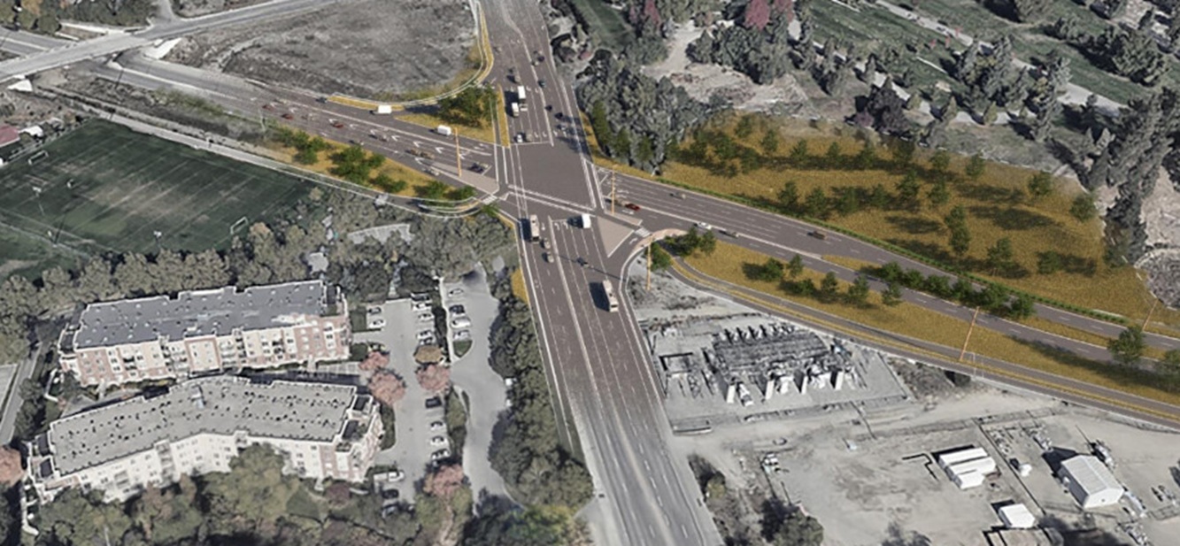 Preliminary designs show the corridor could increase road capacity by 25 to 30 per cent, add new creek crossings, and support future dedicated transit lanes along Highway 97.