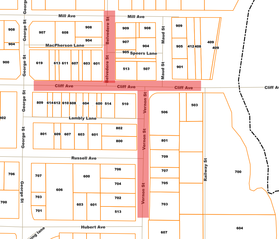 “At various times, traffic to and from the Bawtree Bridge may be detoured along Railway Street.”