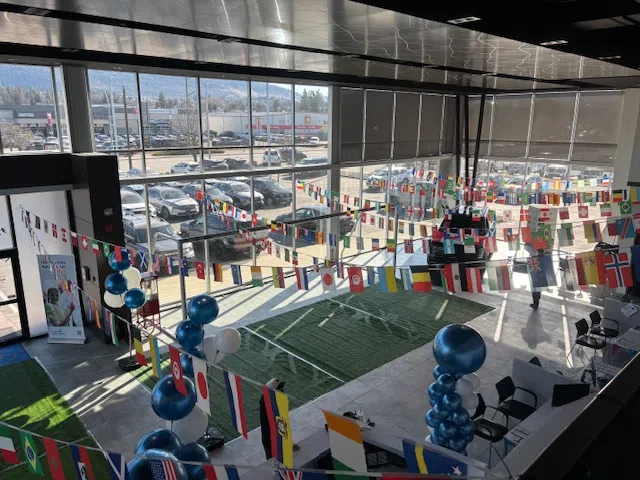 Vernon Hyundai has turned their showroom into a soccer pitch for their World Cup ticket giveaway contest. (Image Credit: Submitted/Vernon Hyundai)