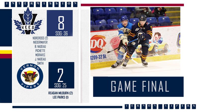 The Penticton Vees improved to 8-0 in the BC Hockey League with an 8-2 victory over the Vernon Vipers Saturday night at Kal Tire Place.The defending league champions scored six straight goals to blow ...