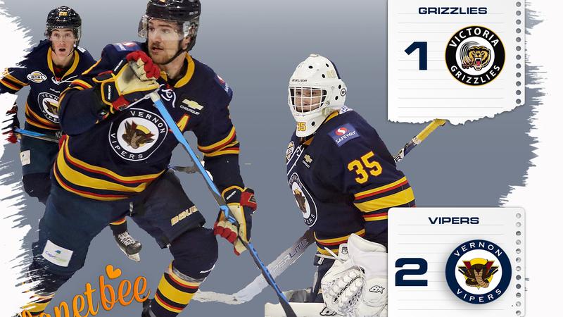 The Vernon Vipers scored late in regulation time to tie it and then beat the Victoria Grizzlies 2-1 in a shootout Saturday night at Kal Tire Place.Max Borovinskiy's first goal of the season at 18:44 o...