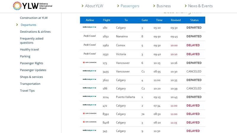 Travellers moving through Kelowna International Airport (YLW) faced delays and cancellations Monday as a winter storm in Calgary created widespread travel disruptions across Western Canada.By mid-morning, more than a dozen departures from Kelowna were either delayed or cancelled, with several inbound flights also affec...